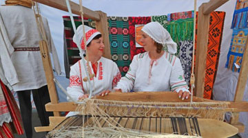 演员扎西邓地(前左)和达珍(前右)表演《边疆人民心向党》(7月18日摄)。
