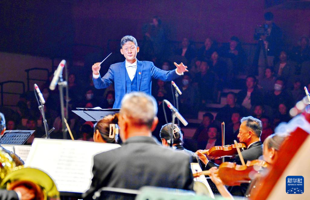 指挥普布次仁指挥乐队演奏《我的祖国》(7月18日摄)。