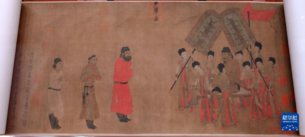 这是“铸牢中华民族共同体意识文物古籍展”展出的《步辇图》复制品(8月2日摄)。