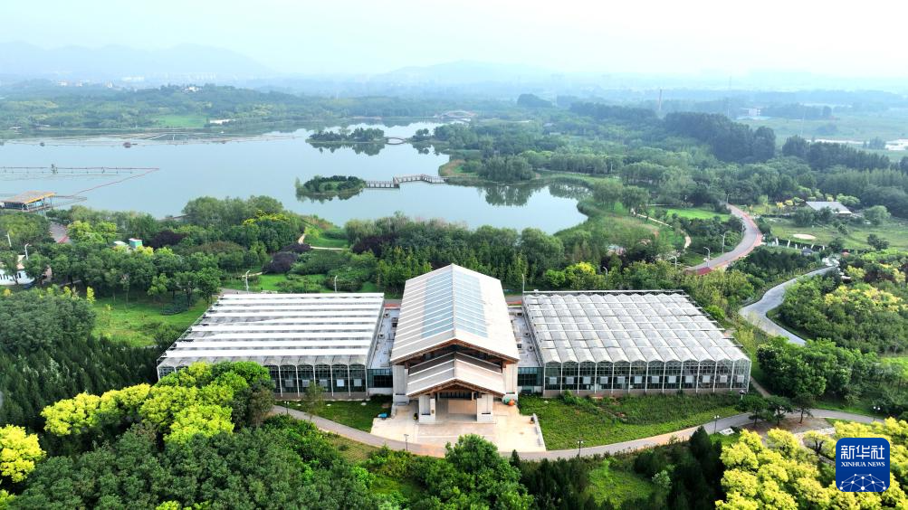 8月9日拍摄的位于河北省石家庄市鹿泉区龙泉湖公园内的一处公园书房(无人机照片)。