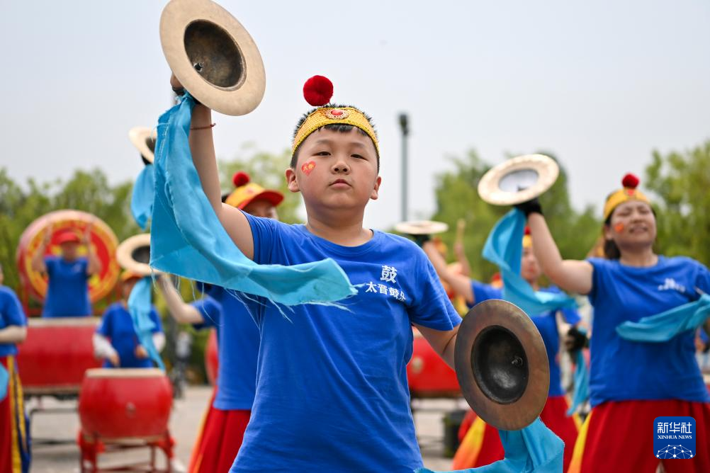 8月17日,一位小朋友在晋祠表演。