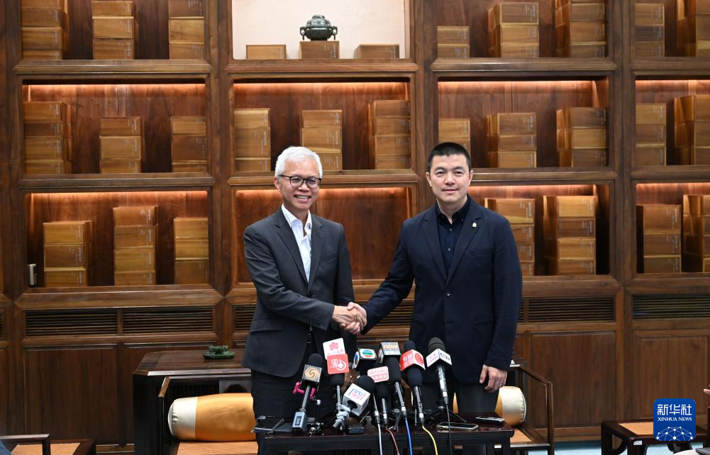 8月22日,故宫博物院常务副院长娄玮(右)、香港故宫文化博物馆馆长吴志华在北京故宫博物院接受采访。新华社记者 金良快 摄