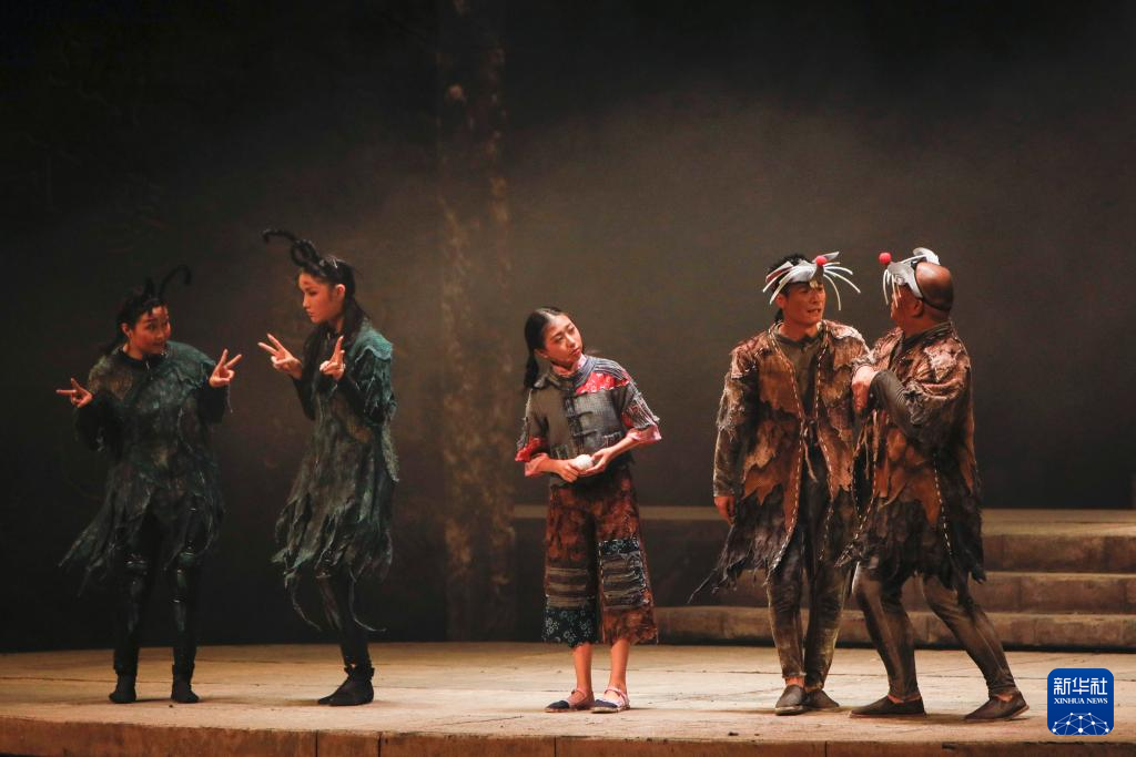 8月29日晚,演员在兰州音乐厅表演新版红色儿童剧《大豆谣》。