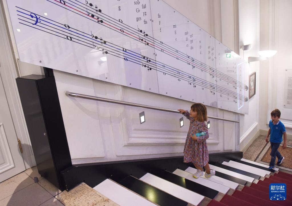 9月2日,在奥地利维也纳“音乐之家”,观众在爬“音乐阶梯”。