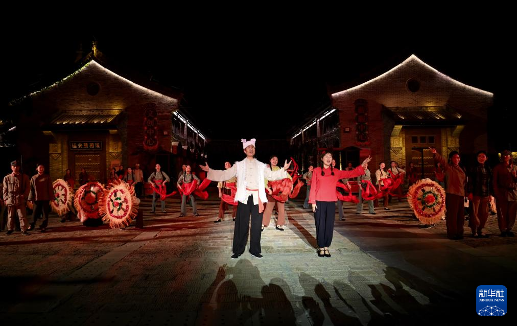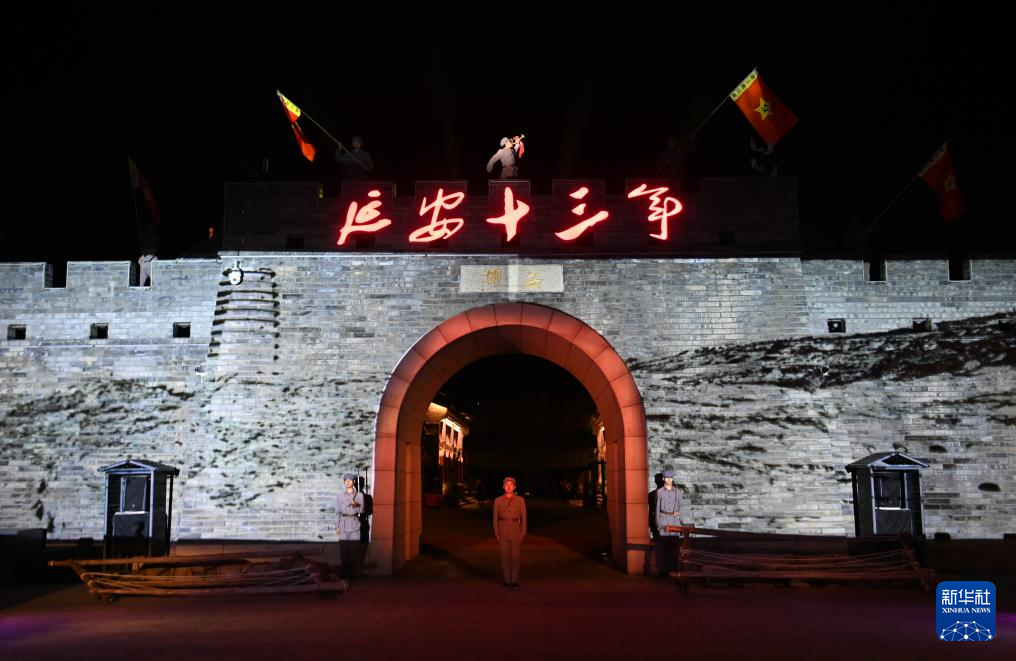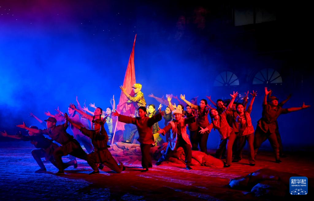8月31日,演员在陕西延安的金延安文化旅游产业园区表演红色歌舞剧《延安十三年》。