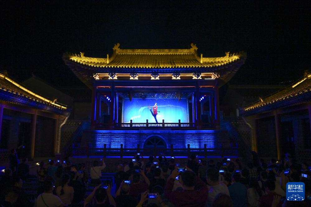 8月31日,游客在陕西延安的金延安文化旅游产业园区观看红色歌舞剧《延安十三年》。