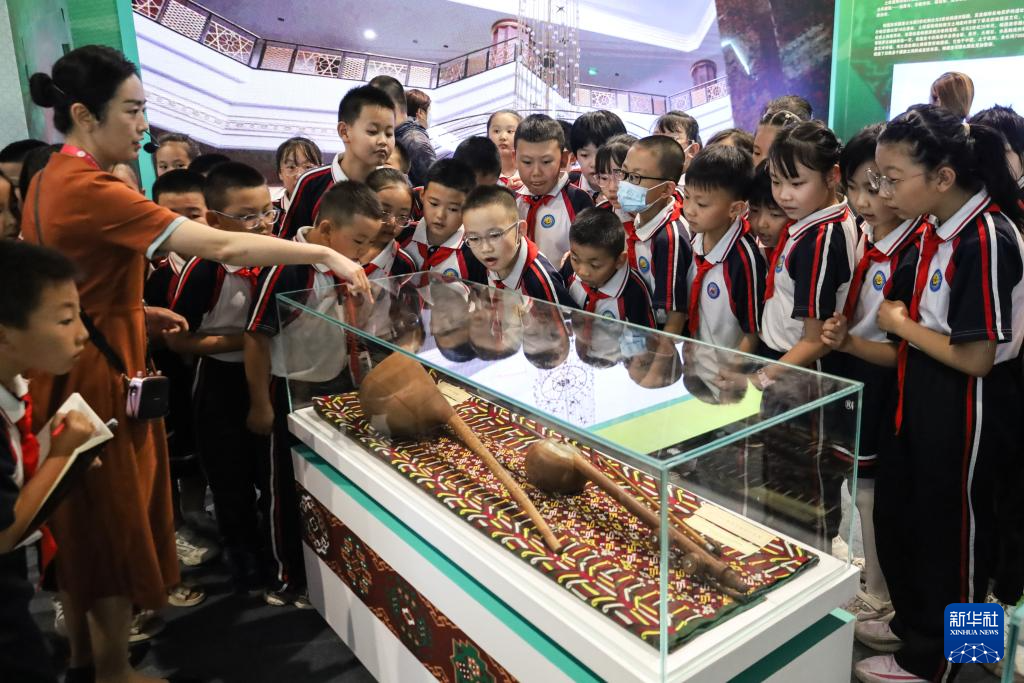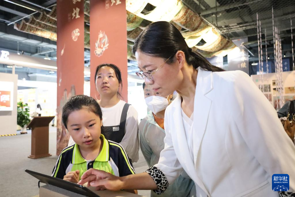 9月7日,学生们在第六届丝绸之路(敦煌)国际文化博览会上参观。
