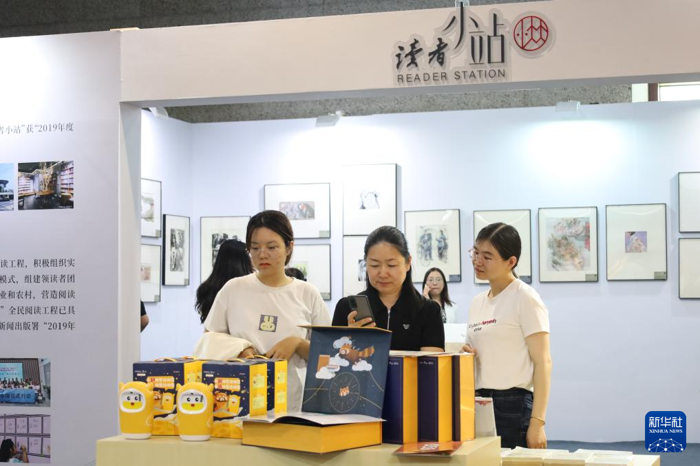 9月7日,观众在第六届丝绸之路(敦煌)国际文化博览会上参观《读者》品牌专题展。