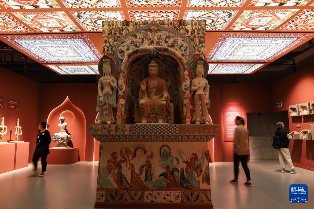 这是9月7日在第六届丝绸之路(敦煌)国际文化博览会拍摄的世界文化遗产保护典范和敦煌学研究高地建设成果展现场。