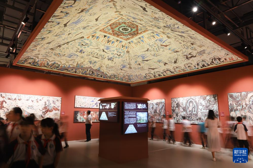9月7日,观众在第六届丝绸之路(敦煌)国际文化博览会上参观敦煌文化主题展。