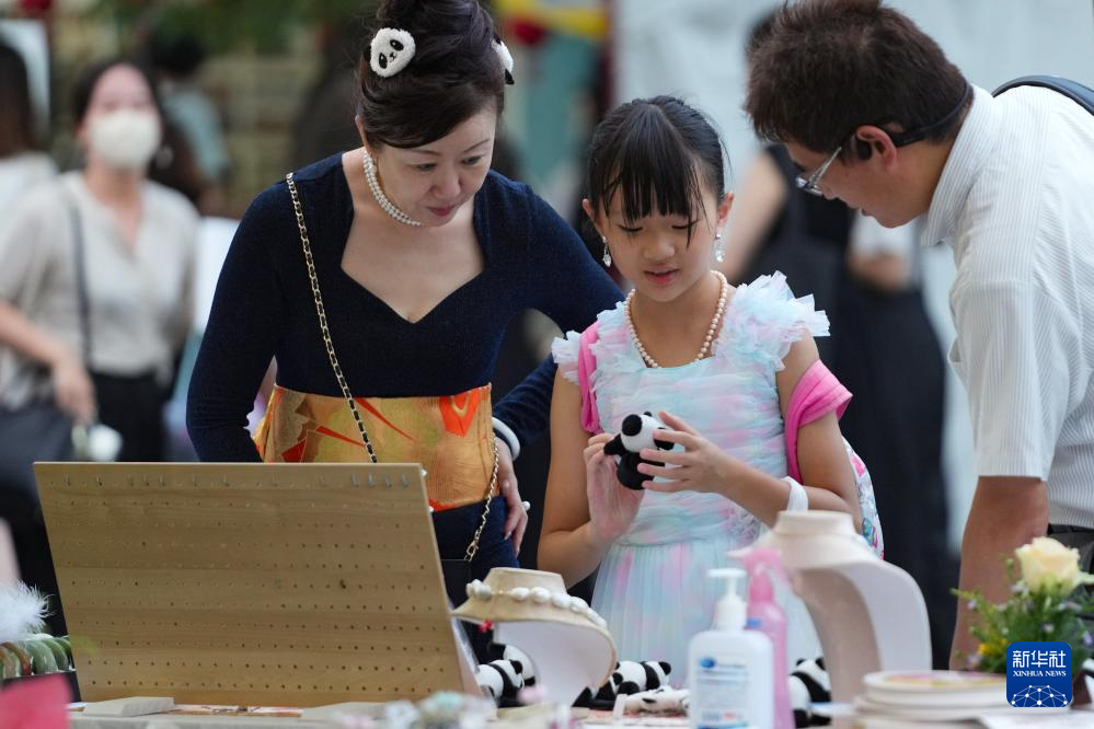 9月9日,在日本东京“2023中国节”活动现场,人们购买熊猫相关商品。