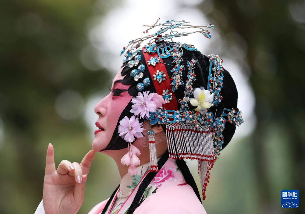 9月13日,江苏省演艺集团昆剧院国家一级演员孔爱萍在法国巴黎埃菲尔铁塔附近参加昆曲快闪。