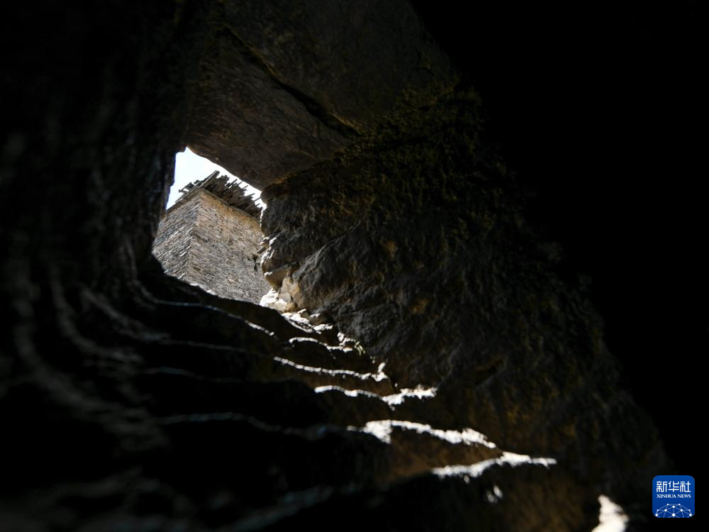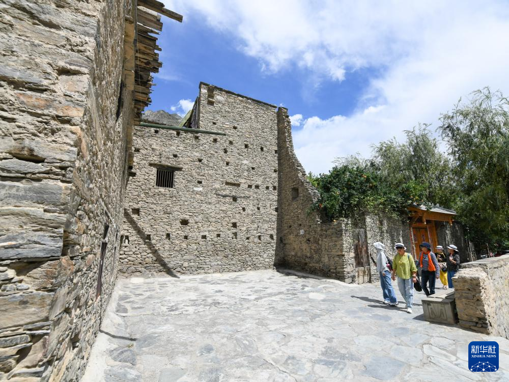 游客在桃坪羌寨的碉房内部参观(9月13日摄)。
