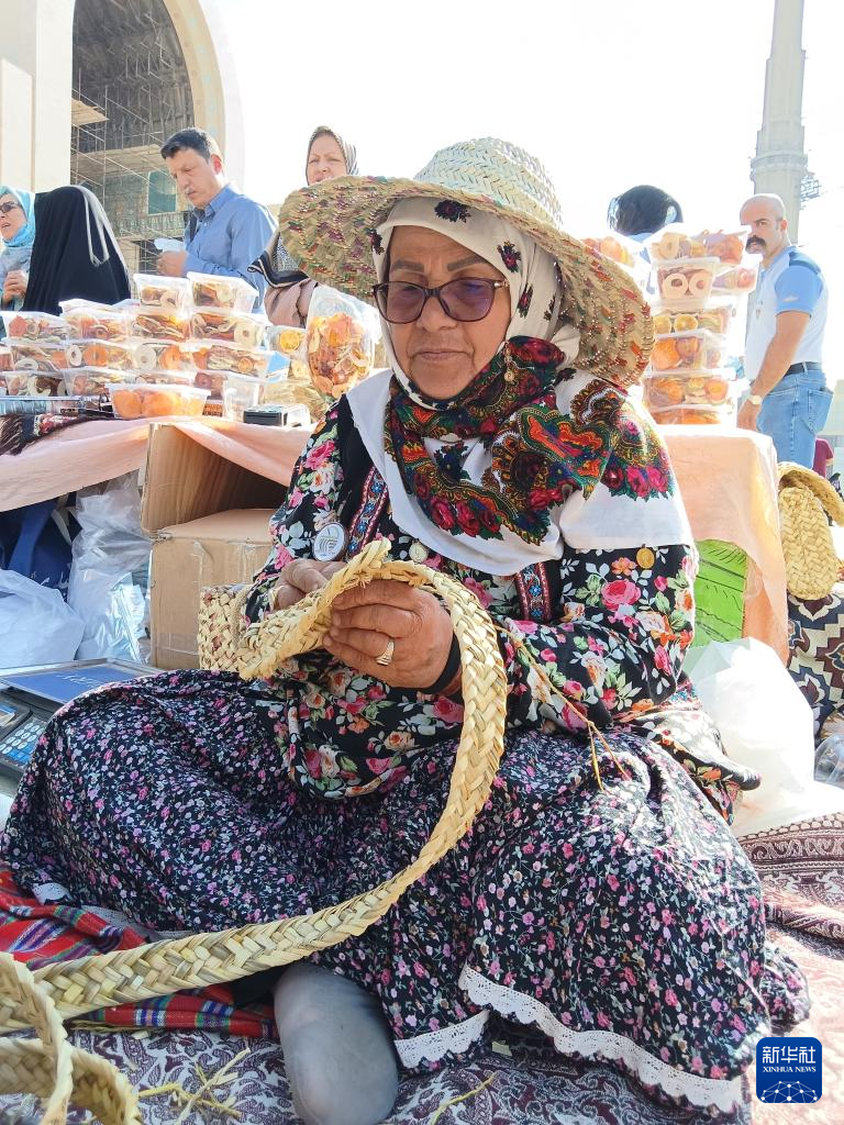 10月10日,在伊朗首都德黑兰,一名女子展示编织技艺。