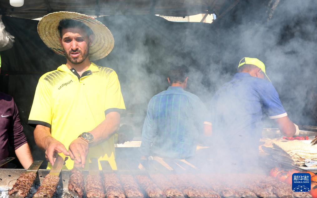 10月10日,在伊朗首都德黑兰,一名男子制作特色美食。