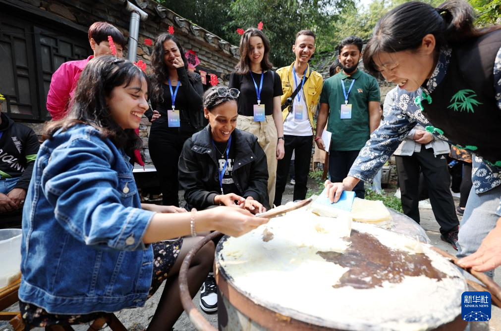 当日,来自俄罗斯、巴基斯坦、摩洛哥、法国等8个国家的20多名来华留学生走进山东省临沂市沂南县竹泉村,体验活字印刷、草编技艺、烙煎饼、做香囊等传统手工和非遗项目,零距离感受中国乡村文化魅力。