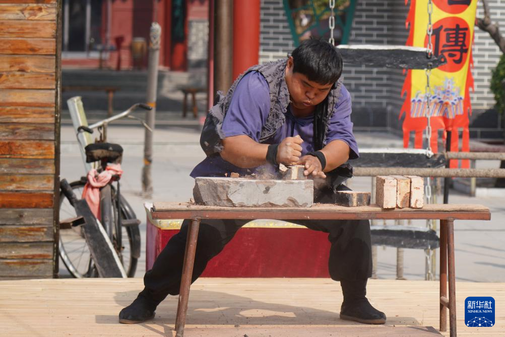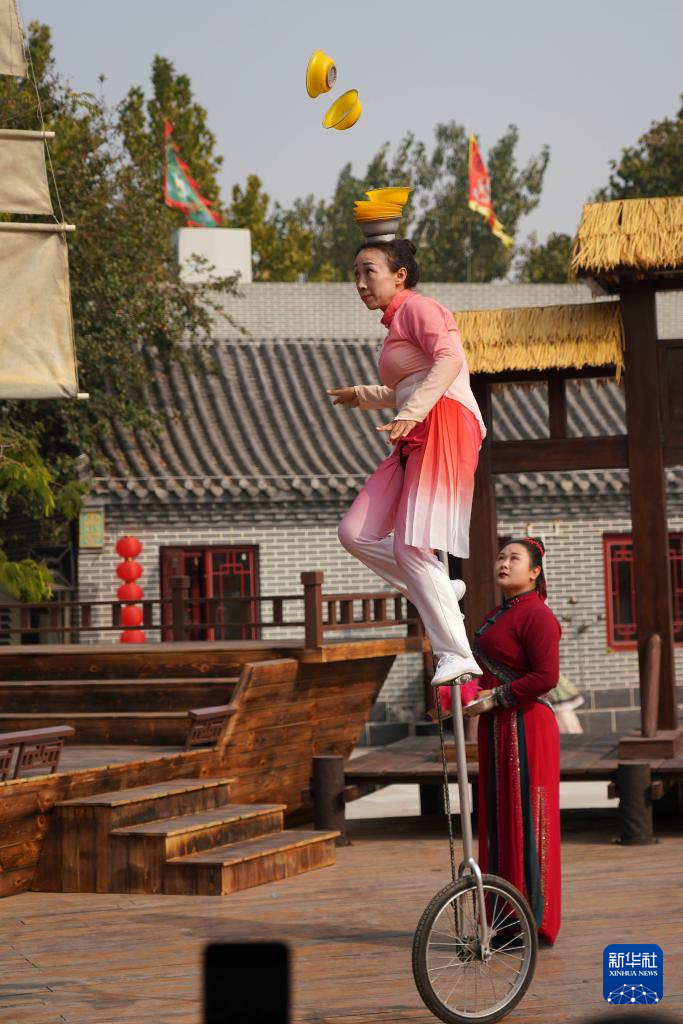 10月17日,杂技演员在吴桥杂技“九月庙会”上表演杂技节目。