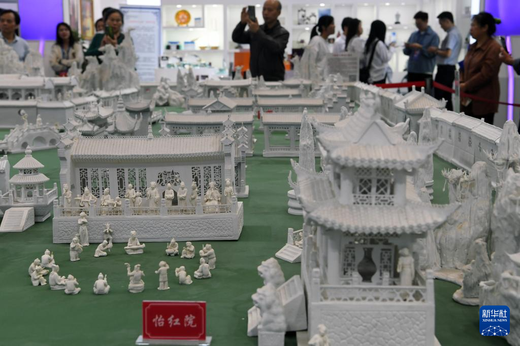 10月18日,人们在瓷博会现场欣赏展品《瓷造大观园》。