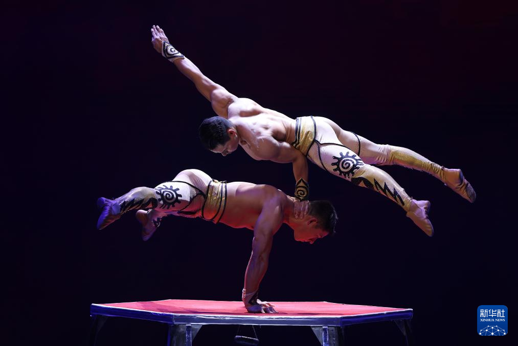 10月28日,演员在河北省沧州市吴桥县吴桥杂技大世界景区江湖大剧院表演节目。