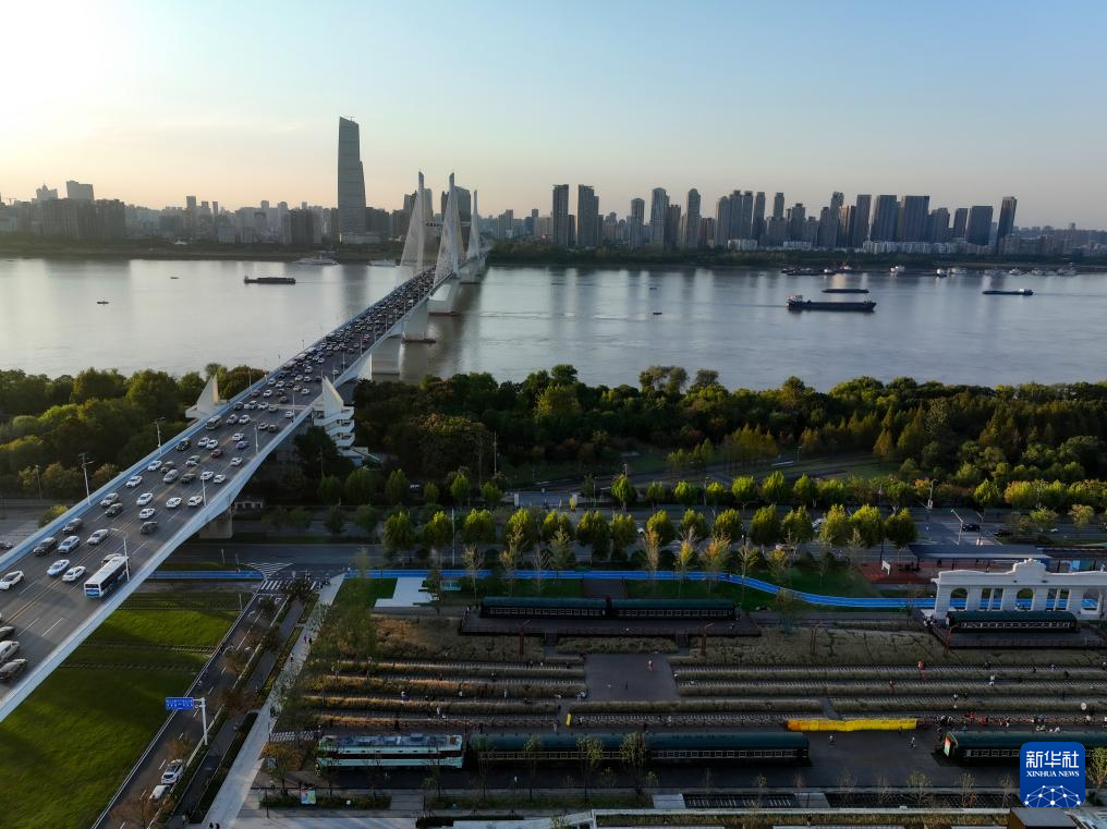 11月6日拍摄的武汉市武昌四美塘铁路遗址文化公园(无人机照片)。