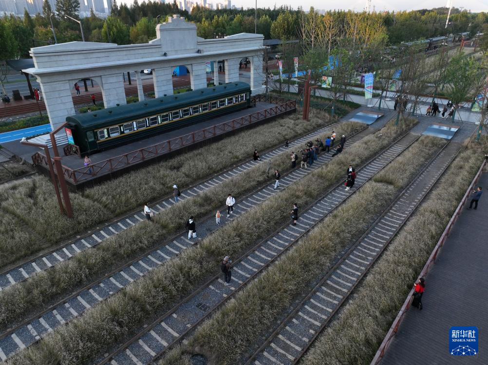 11月6日,游人在武汉市武昌四美塘铁路遗址文化公园游览(无人机照片)。