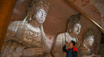 这是10月16日在斯洛文尼亚卢布尔雅那的民族志博物馆拍摄的中国古建筑室内装饰碎片。