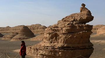 这是11月6日在斯洛文尼亚卢布尔雅那的民族志博物馆拍摄的修复完成的中国古建筑木质大门模型。