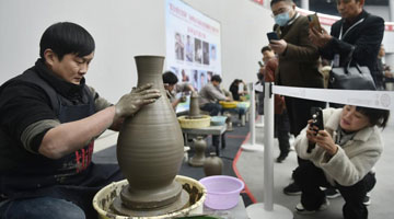 11月11日,在浙江省温州市三垟湿地公园北广场,舞狮队选手在比赛中。
