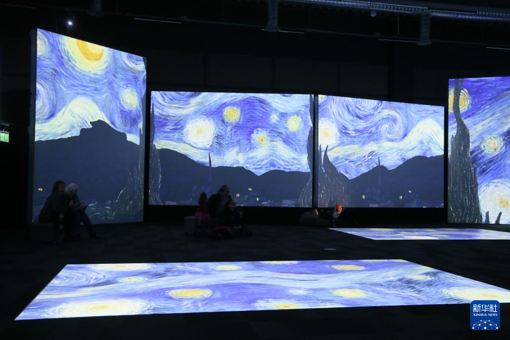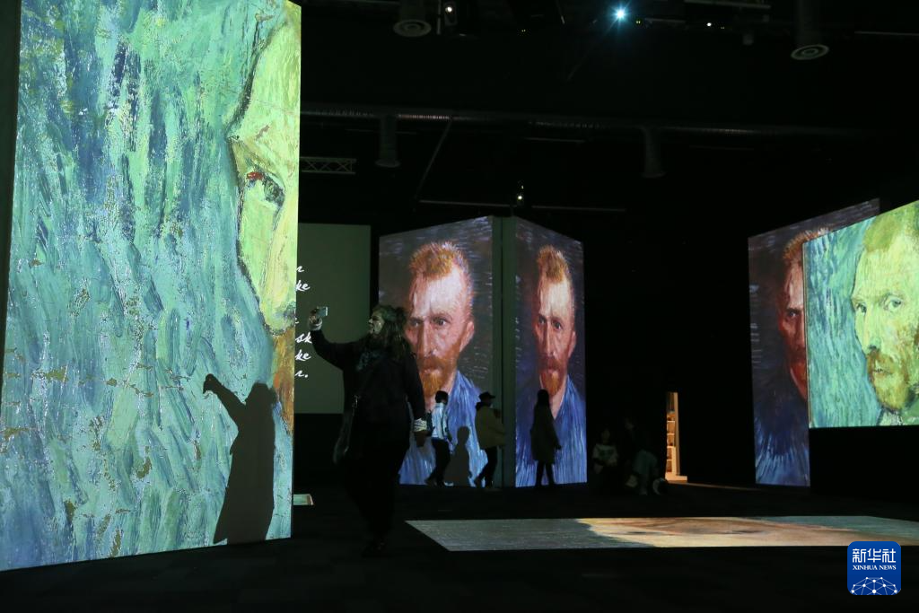 11月17日,在挪威维肯郡的利勒斯特伦,观众观看梵高光影艺术展。