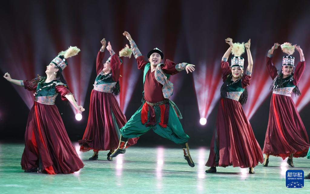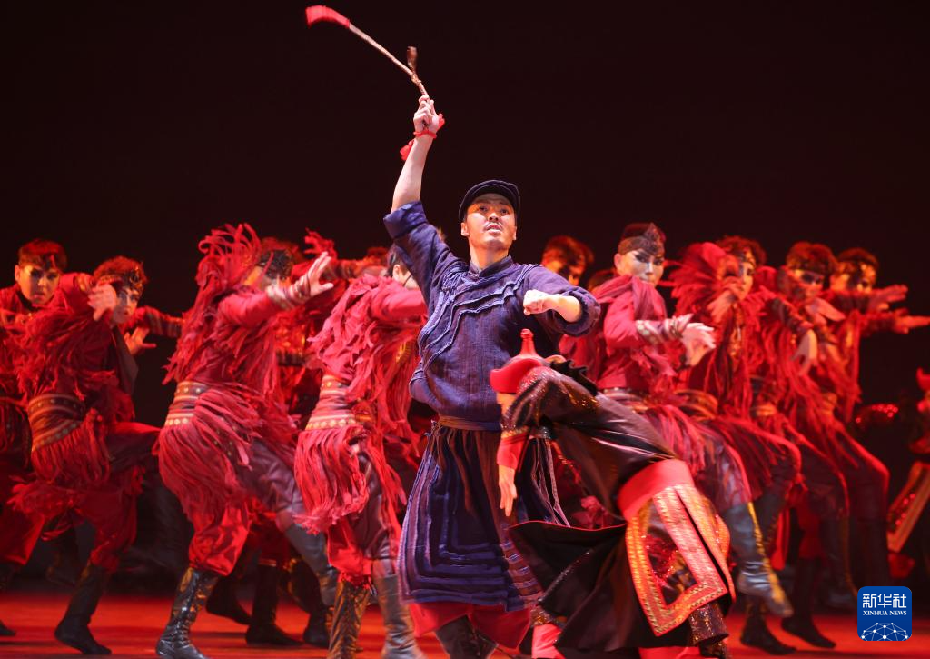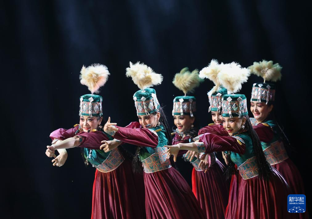 11月19日,新疆博尔塔拉蒙古自治州歌舞团演员表演作品《守·家园》。