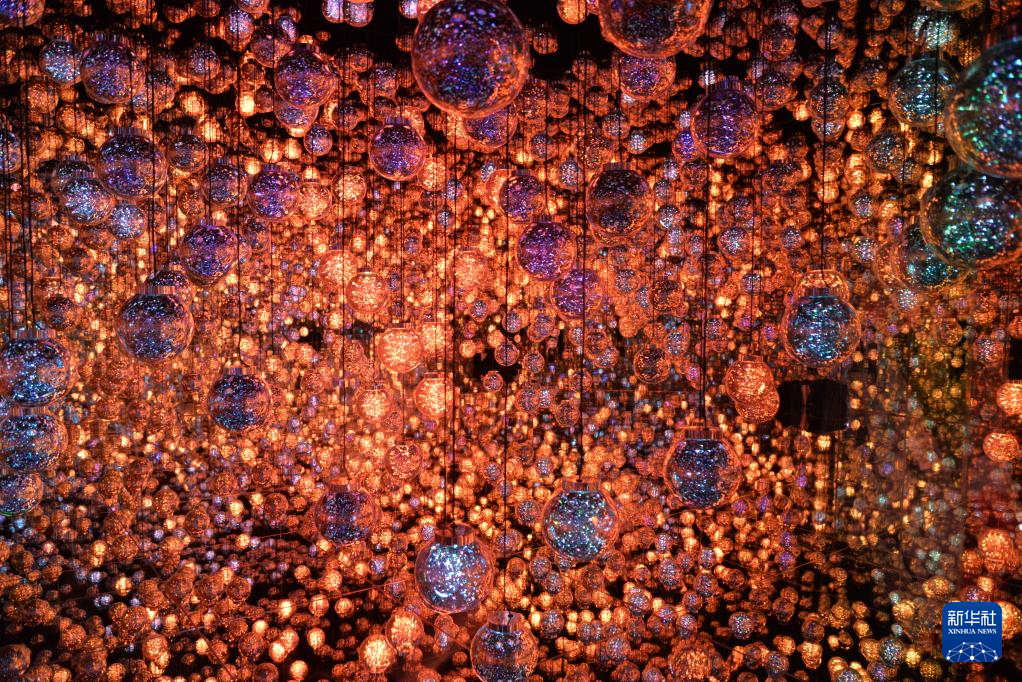 这是11月20日在日本东京“teamLab无界”美术馆的媒体预览活动上拍摄的艺术作品“泡泡宇宙”。