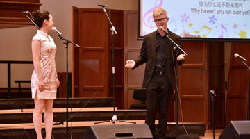11月25日,中国艺术研究院院长周庆富在影展开幕式上为朱宪民(左)颁发作品收藏证书。