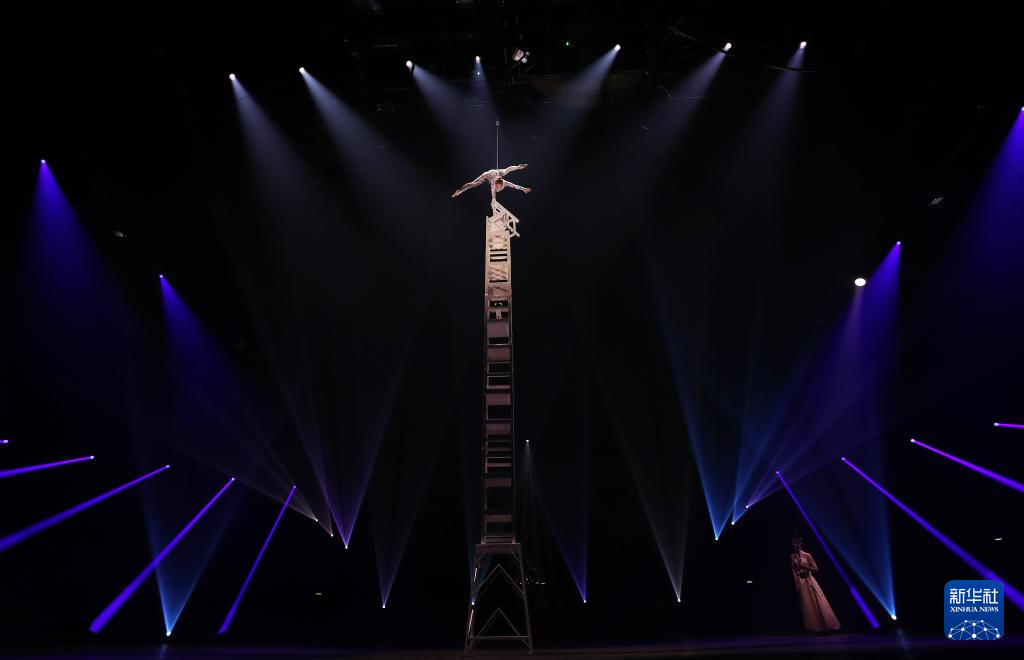 12月8日,演员在法国巴黎举行的中国杂技“奇妙之夜”演出上表演《高椅》。