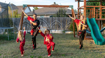 12月12日,李明军在院子里整理木材(无人机照片)。