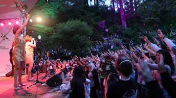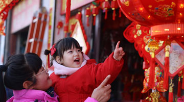 1月14日,小朋友在青田县瓯江畔的神龙彩灯前拍照留影。神龙彩灯以整条龙作为主体,拱圈呈螺旋状,这是当地迎接农历龙年的特色彩灯之一。