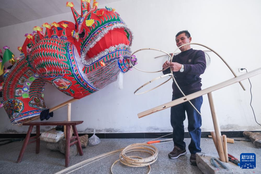 1月13日,青田县温溪镇的陈建南正在制作龙灯,为春节“唱龙灯”做准备。青田唱龙灯习俗是丽水市非物质文化遗产代表性保护项目,从正月初二开始,龙灯配上唱龙灯艺人到各村进行表演,祈求风调雨顺、平安有福。