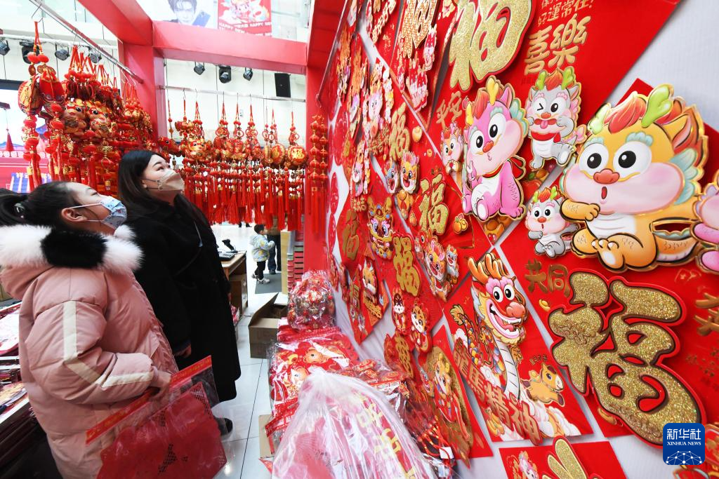 1月21日,市民在河北石家庄新乐市一家超市选购新春饰品。