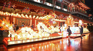 1月19日,中国武汉杂技团演员在摩纳哥蒙特卡洛表演节目《扬帆追梦·浪船》。
