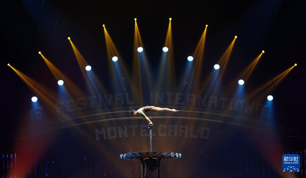 1月20日,中国江苏省杂技团演员王梦尘在摩纳哥蒙特卡洛表演节目《炼——倒立技巧》。