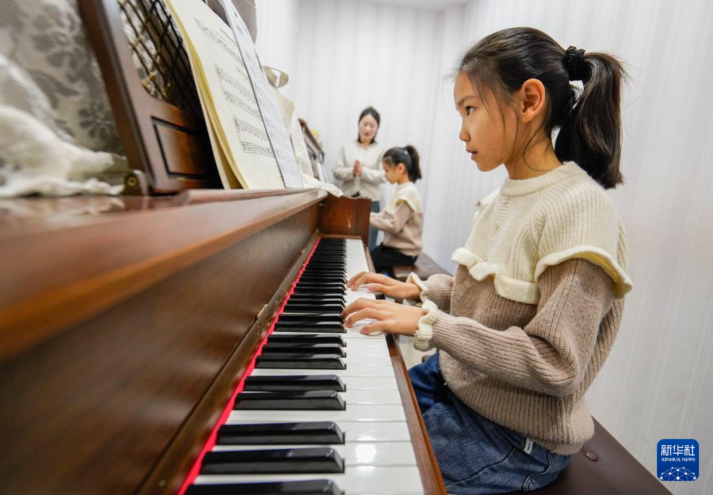 1月23日,学生在河北省遵化市一家培训机构学习演奏钢琴。
