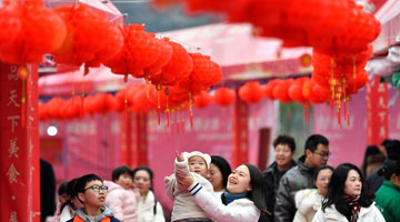 春节临近,安徽省黄山市歙县徽州古城挂起串串大红灯笼,洋溢着喜庆红火的节日氛围。