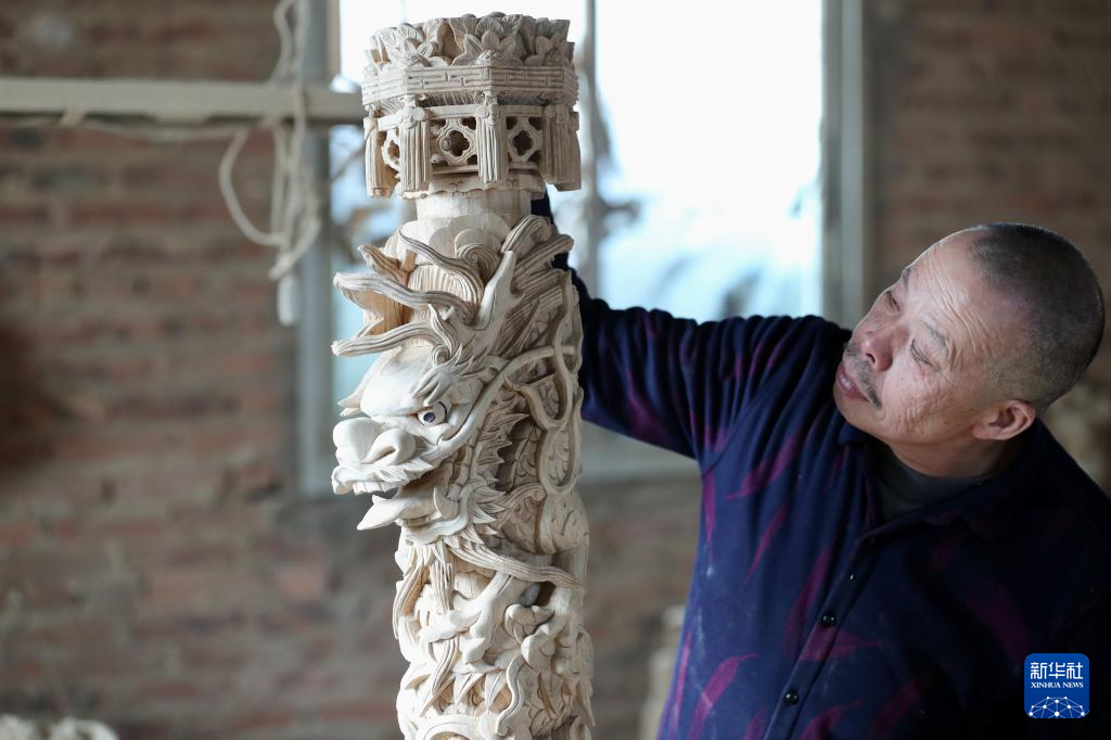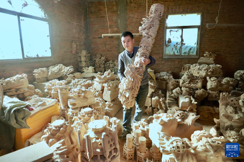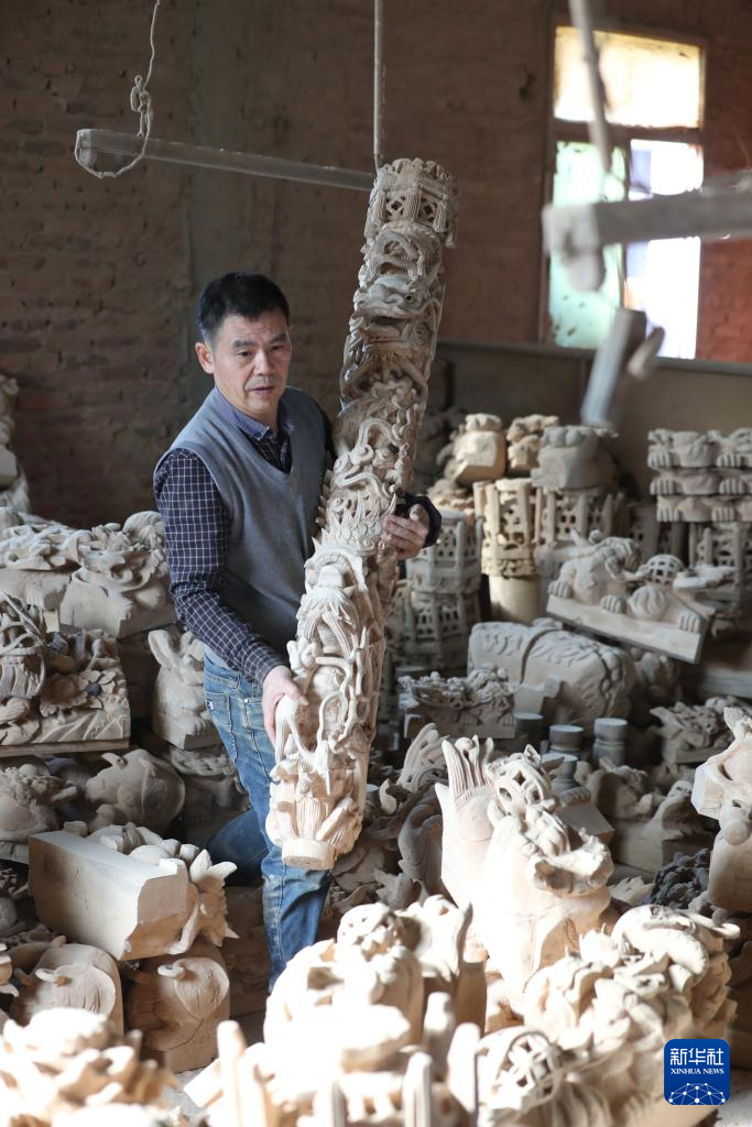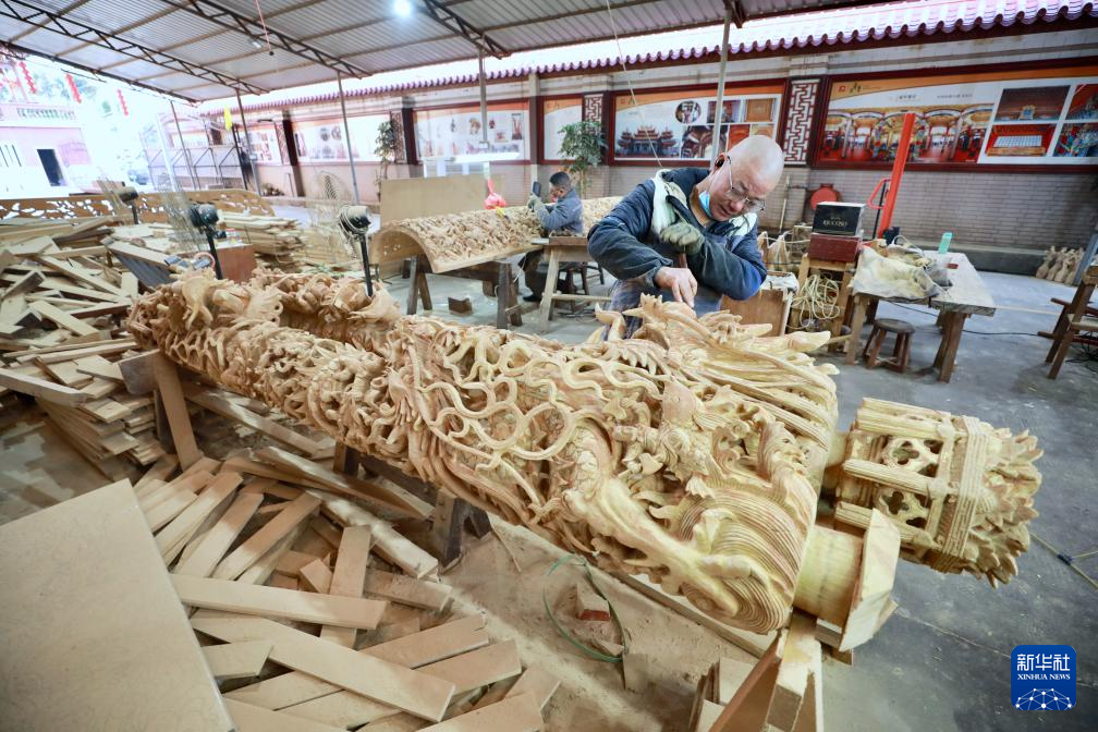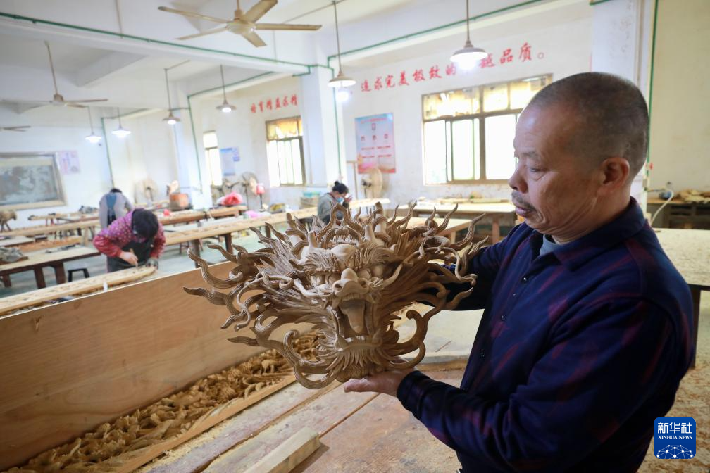 龙年春节将至,在福建省晋江市东石镇潘山村的木雕厂内,工人们加紧赶制出货订单,一件件精美的龙柱、龙头等庙宇木雕产品在工人们的精雕细琢中诞生。潘山庙宇木雕以庙宇雕刻为表现方式,历史悠久,工艺精湛,产品主要在海峡两岸销售,同时销往新加坡、印度尼西亚、菲律宾等东南亚国家。2021年,以潘山庙宇木雕为代表的泉州木雕成功入选第五批国家级非遗名录。