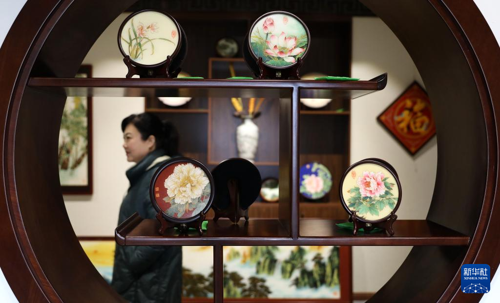 春节刚过,位于辽宁省凤城市凤凰山脚下的凤城景泰蓝珀晶画工作室内,55岁的锡伯族非遗传承人刘晶涛和她的徒弟们正忙着制作各式景泰蓝珀晶画。