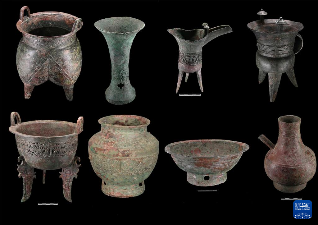 河南郑州商都书院街墓地出土的部分青铜器。