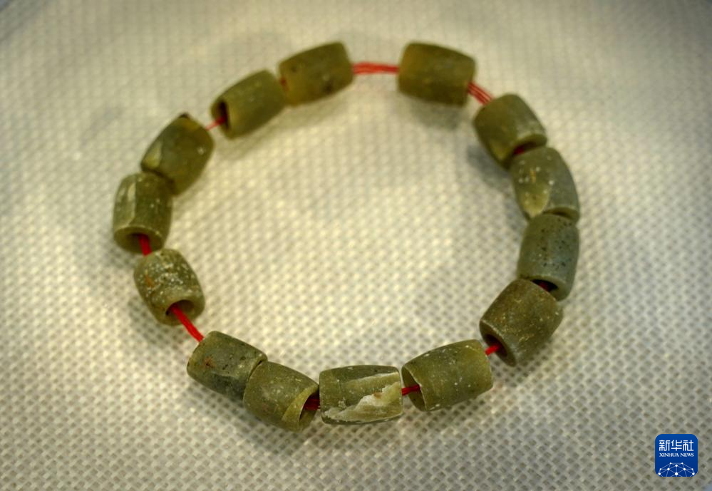 这是王庄遗址出土的玉串饰(1月30日摄)。