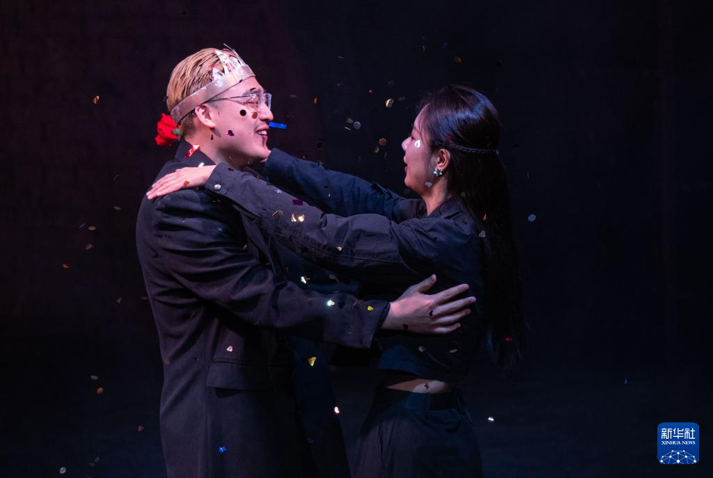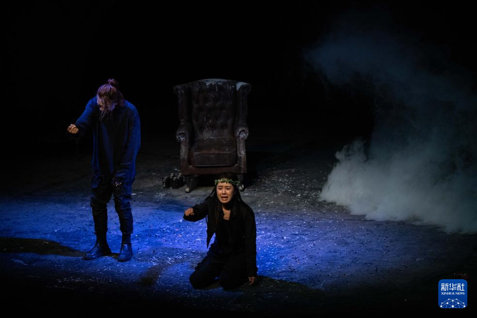 4月5日,演员在话剧《哈姆雷特》的演出中。