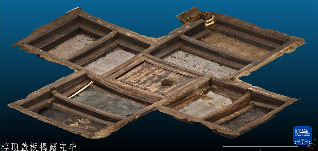 这是安徽淮南武王墩主墓椁室盖板揭露完毕后的情况。