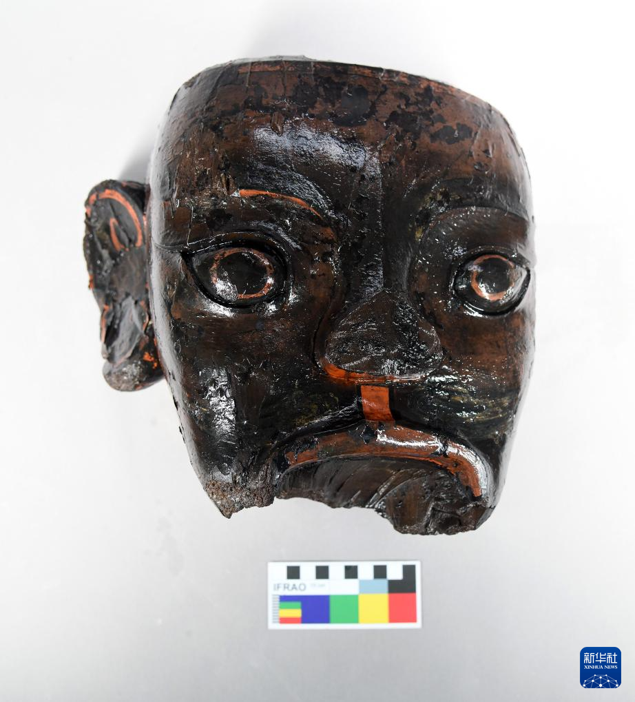这是武王墩墓出土的木俑首(2024年4月2日摄)。