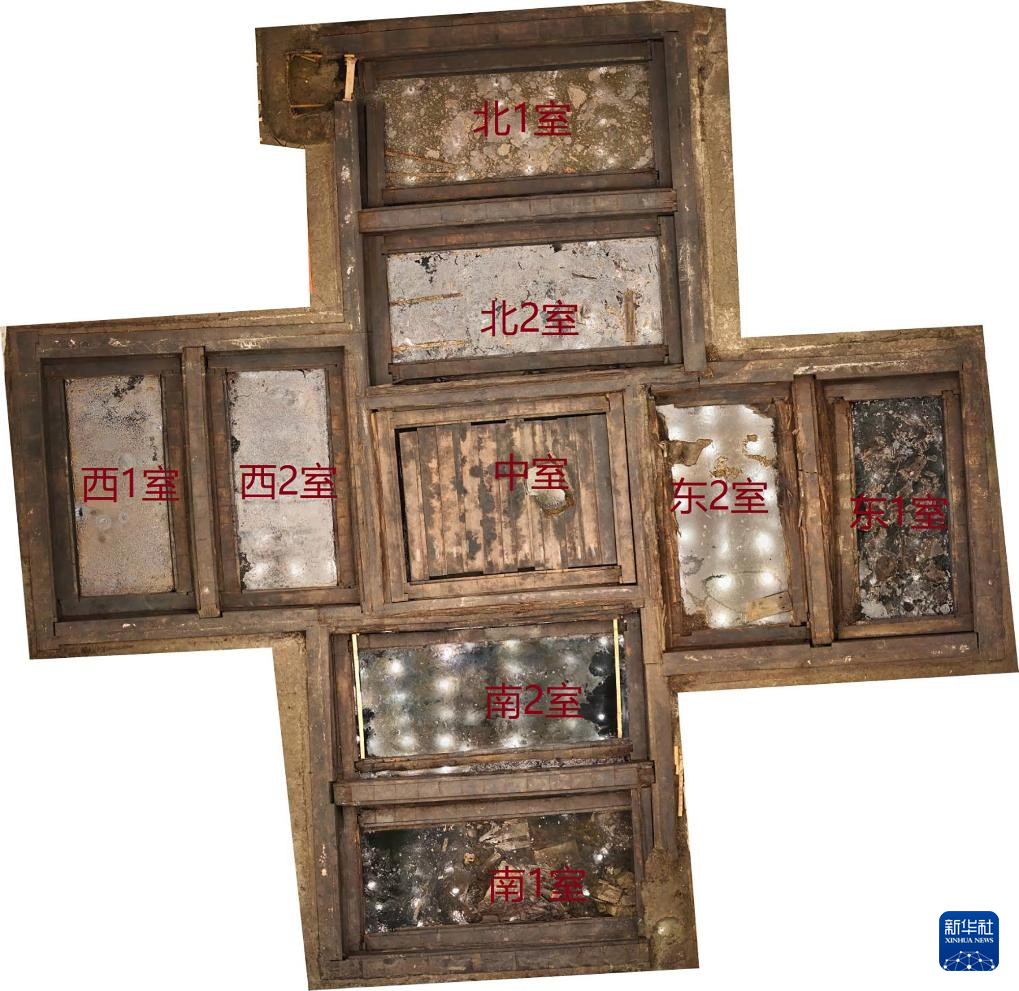 这是安徽淮南武王墩主墓木椁室布局(周边盖板揭取后)。