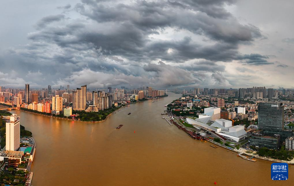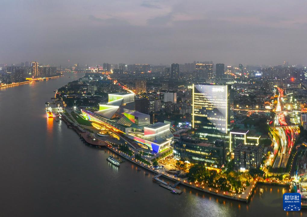 2024年4月27日拍摄的即将正式启用的白鹅潭大湾区艺术中心(右)。